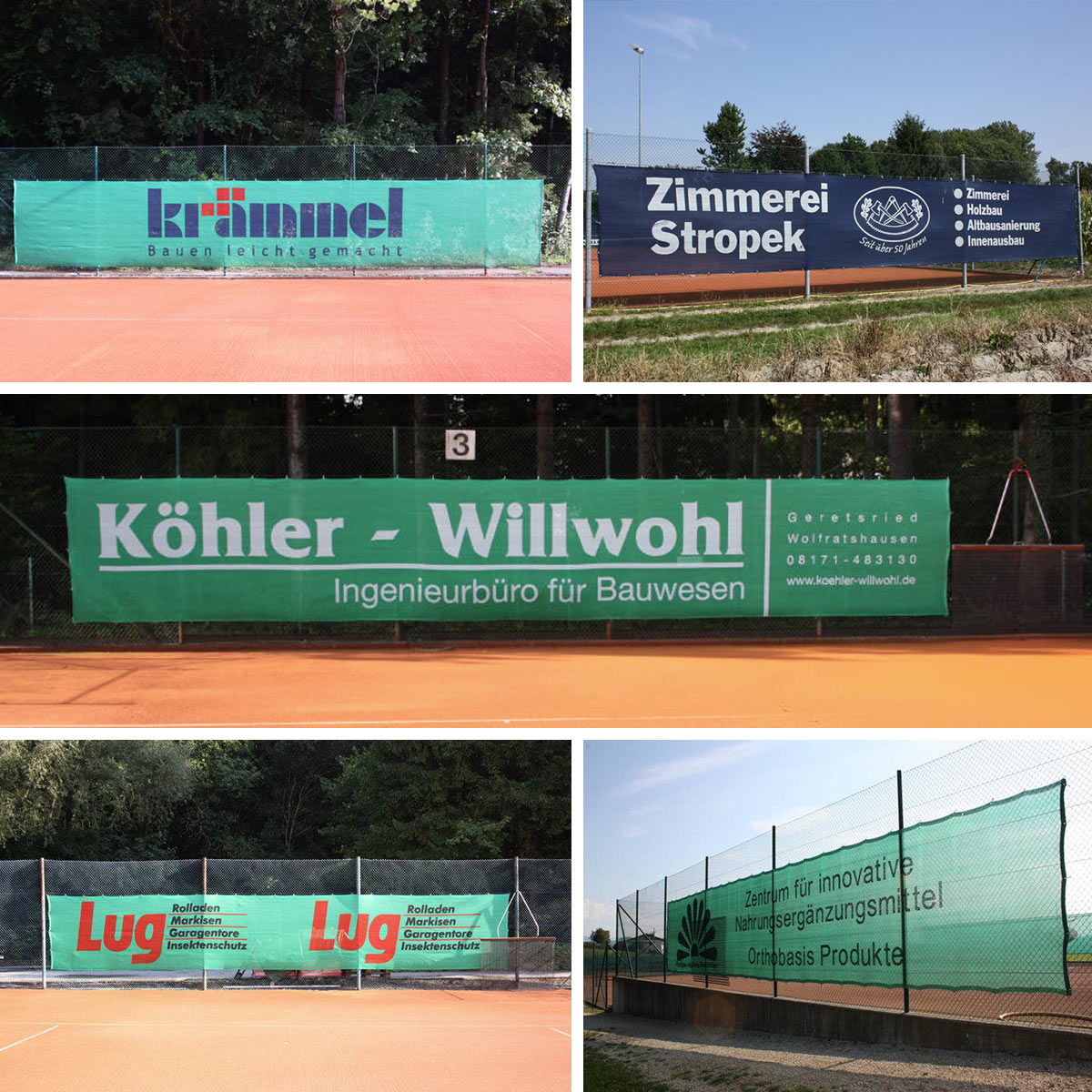 Diese universelle Tennisblende zeichnet sich durch eine sehr hohe Qualität aus und ist speziell im Randbereich nochmals mit einem Einlegeband verstärkt, um den Ösen zusätzlichen Schutz gegen einen eventuellen Ausriss zu gewähren. Weiters ist sie durch die hohe Maschendichte ein idealer Werbeträger für Ihre Werbebotschaft.
